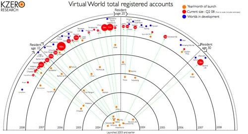 Metrics gurus Kzero have released a new breakdown of the age variances by type of virtual world frequented.