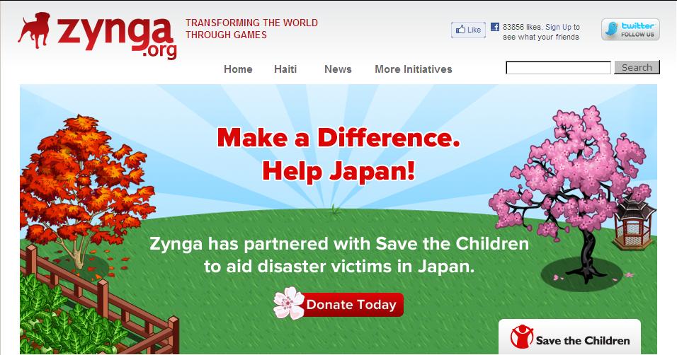 One such initiative is being driven by a leader in the social gaming sphere, Zynga. Creators of the (in)famous game Farmville amongst others, Zynga.org is devoted to raising money for worthy causes, using Zynga’s worlds as the vehicle. It marries two very powerful forces: virtual goods and a desire to help others. Using the current Haiti disaster as an example, 1.5 million dollars was raised and significant amounts are expected for the current tragedy in Japan: