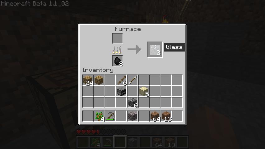 Quickly, I obtain a little coal, and enough stone to use for the head of a new pick-axe. I look up at the sun. There’s always a little time-pressure on the first day.